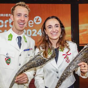 Victoria Hudson und Valentin Bontus wurden von den Journalist:innen der Sports Media Austria zu Österreichs Sportlerin und Sportler des Jahres gewählt. Die Speerwurf-Europameisterin und der Kite-Olympiasieger aus Niederösterreich jubelten jeweils über ihre ersten „Nikis“.