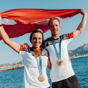 Tränen lügen nicht. Also standen Lara Vadlau und Lukas Mähr am Olympia-Podium, die Goldmedaille schon um den Hals. Aus den Boxen dröhnte die Bundeshymne – erstmals seit Anna Kiesenhofer vor drei Jahren.